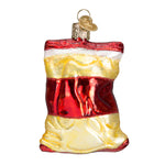 Celebrate America's favorite snack food with this whimsical glass ornament. It was carefully mouth-blown into a finely crafted mold. Then a hot solution of shiny liquid silver was poured inside. Finally, the ornament was hand-painted with many brightly colored lacquers and glitters for you to enjoy!