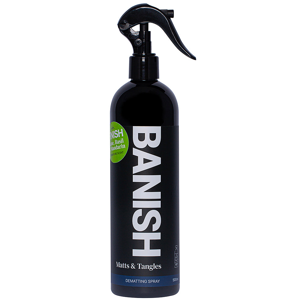 Banish Dematting Spray now with Lime, Basil & Mandarin scent a fast and effective solution for everyday dog grooming.