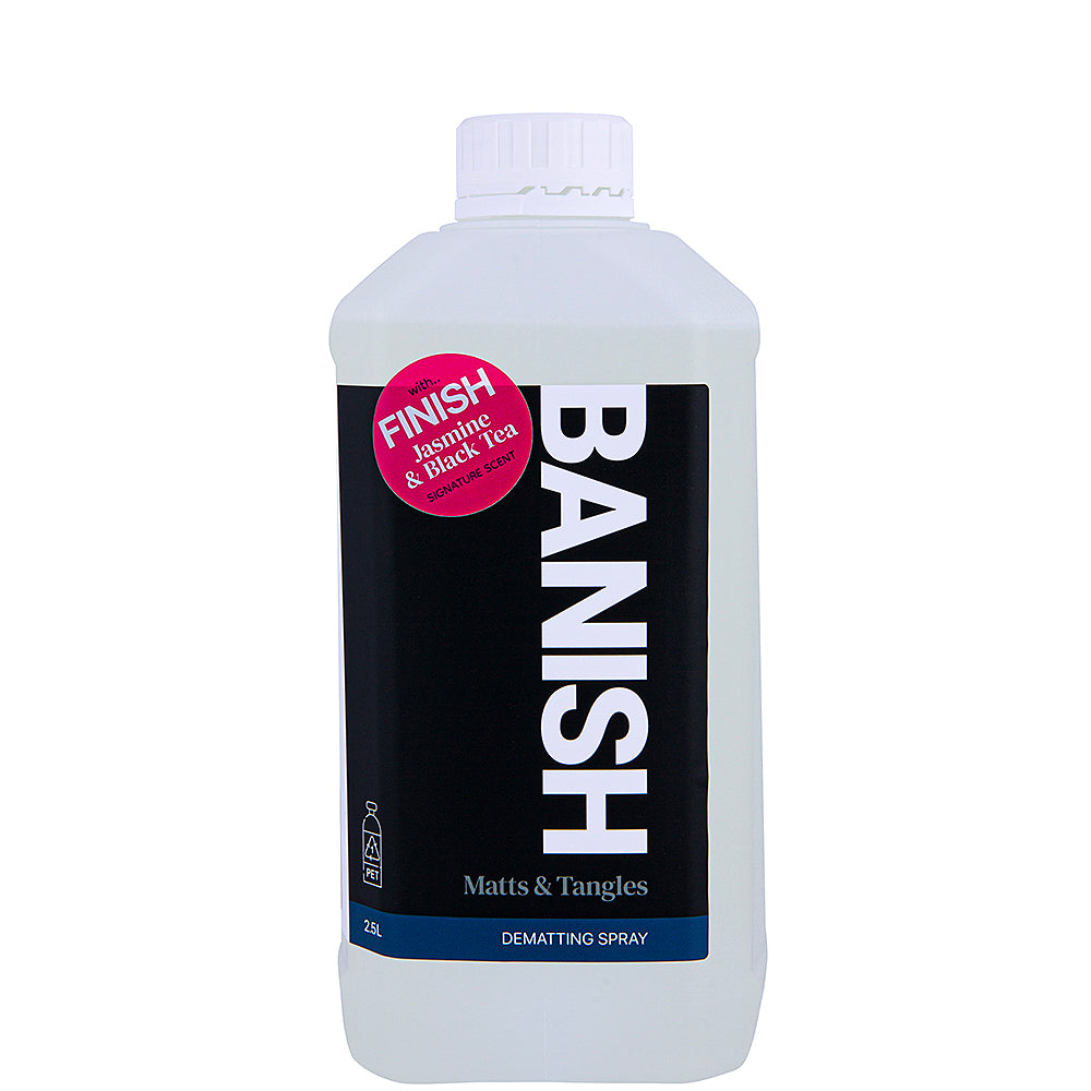 Banish's dematting spray, designed to help unravel mats and tangles with speed and efficiency Can be used before or after bathing, let the comb or brush do the work they were made for! Adds softness...