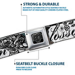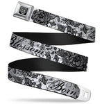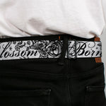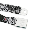 BD Wings Logo CLOSE-UP Full Color Black Silver Seatbelt Belt - Born to Blossom Black/White Webbing