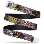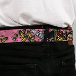 BD Wings Logo CLOSE-UP Full Color Black Silver Seatbelt Belt - Born to Raise Hell CLOSE-UP Pink Webbing