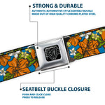 BD Wings Logo CLOSE-UP Full Color Black Silver Seatbelt Belt - Hibiscus Collage Blue/Orange/Yellow Webbing