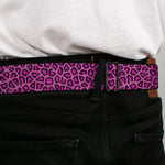 BD Wings Logo CLOSE-UP Full Color Black Silver Seatbelt Belt - Leopard Pink Fuchsia Webbing
