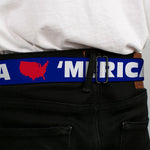 BD Wings Logo CLOSE-UP Full Color Black Silver Seatbelt Belt - 'MERICA/USA Silhouette Blue/White/Red Webbing