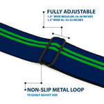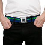 BD Wings Logo CLOSE-UP Full Color Black Silver Seatbelt Belt - Racing Stripe Navy/Bright Green Webbing