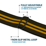 BD Wings Logo CLOSE-UP Full Color Black Silver Seatbelt Belt - Stripe Black/Gold Webbing