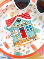 Designed to weather the harsh climate of salty air, winds and rain, beach houses have a homey and rustic feel that washes up childhood memories of sand castles, kite flying, beach combing and long sandy walks. One can almost smell the salty air when hanging the beach house ornament!