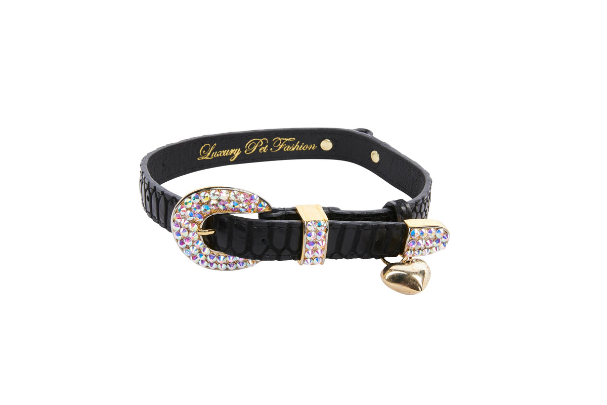 Black Embossed Snake Italian Leather With 3 Piece Swarovski Crystal Hardware