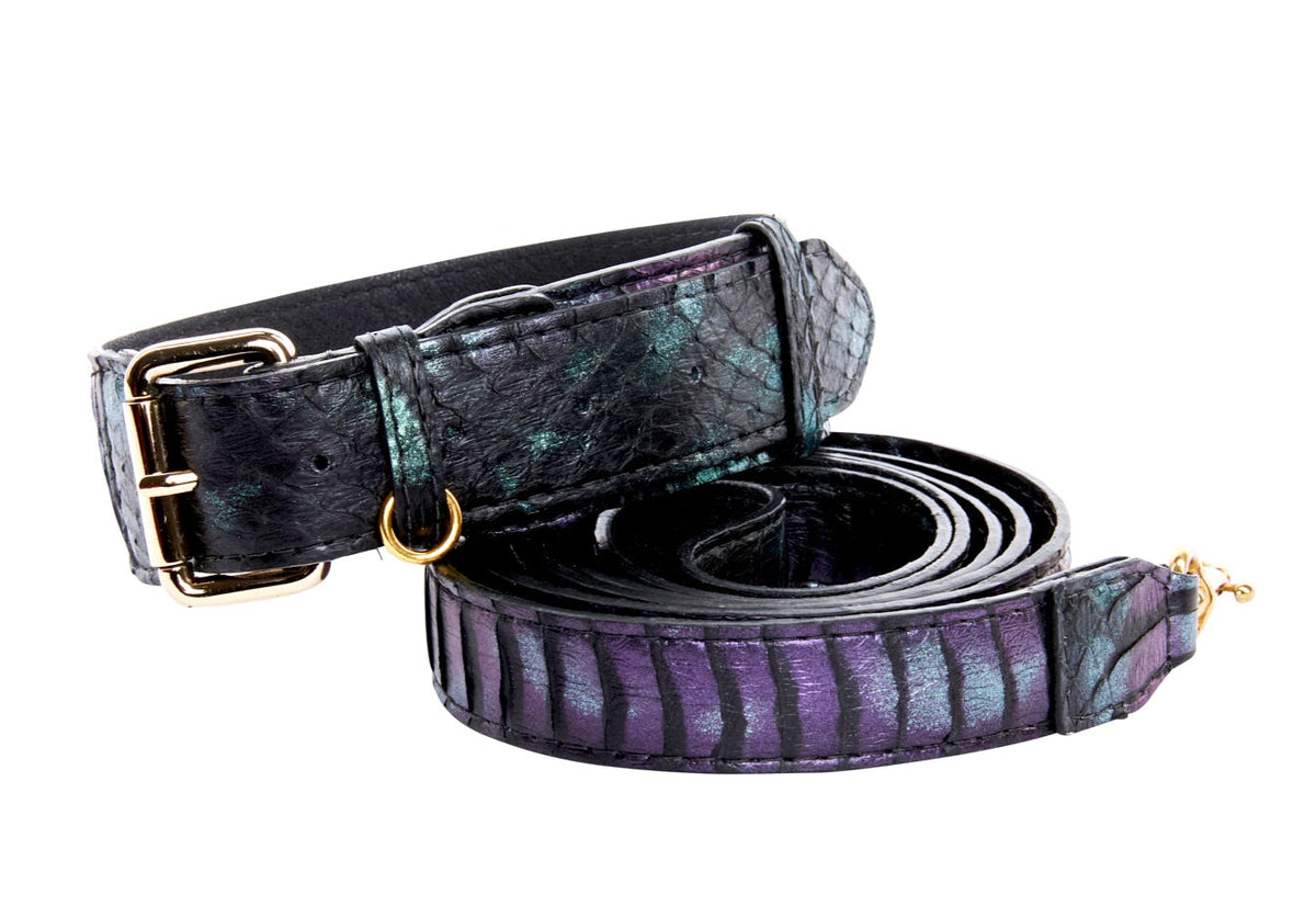 Black, Green, Purple Snake Classic Collar & Leash Set