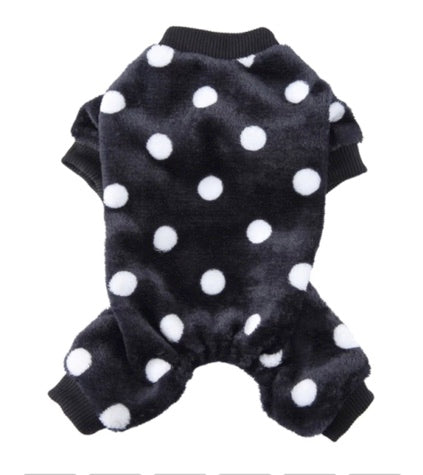 Polkadot Jams are made of soft and cozy fleece. Sure to keep your pup warm all winter long!