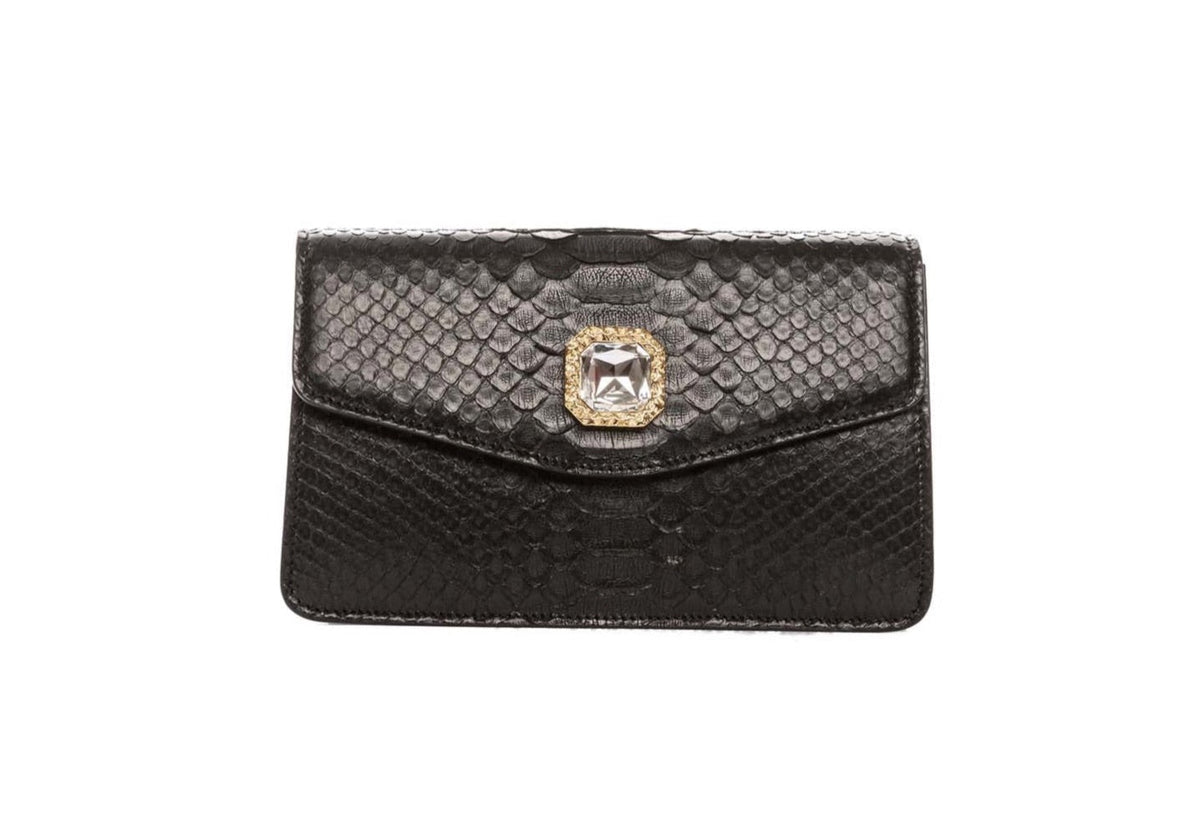 Elegant, exotic, beauty. This Allysa Payne classic black Python clutch, is hand crafted in Italy, using the highest quality Python, and custom hardware. The snakeskin is durable yet soft and smooth to the touch. Complete with a custom Swarovski crystal stone in the center. This elegant, chic style is classic! A sophisticated fusion of a shoulder bag and clutch. This clutch is the perfect accessory to dress up any outfit. The gold chain can be worn over the shoulder, or tucked inside, to become completely invisible. An AP must have for any wardrobe.