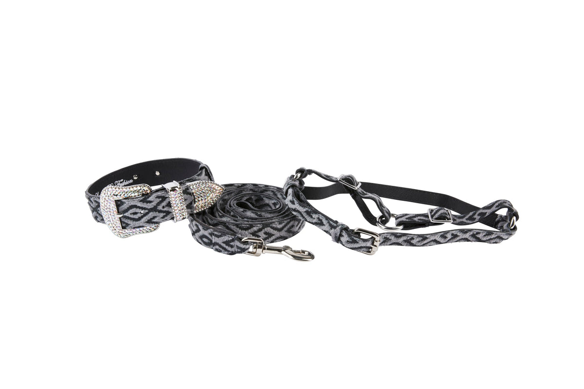 Fit 14-19 neck. Harness 30-60lbs. Leash 54 long.