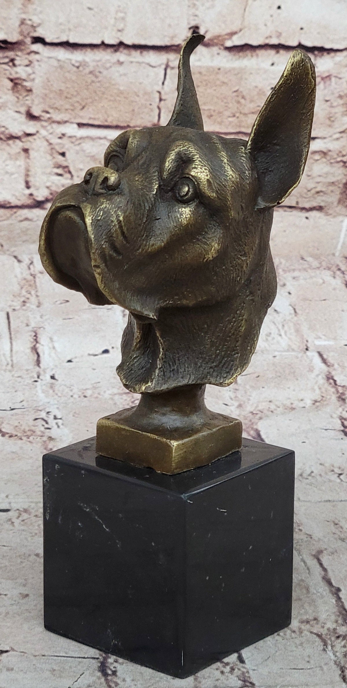 Boxer Dog Breed Bronze Metal Bust Sculpture Statue Signed Original Art on Marble Base