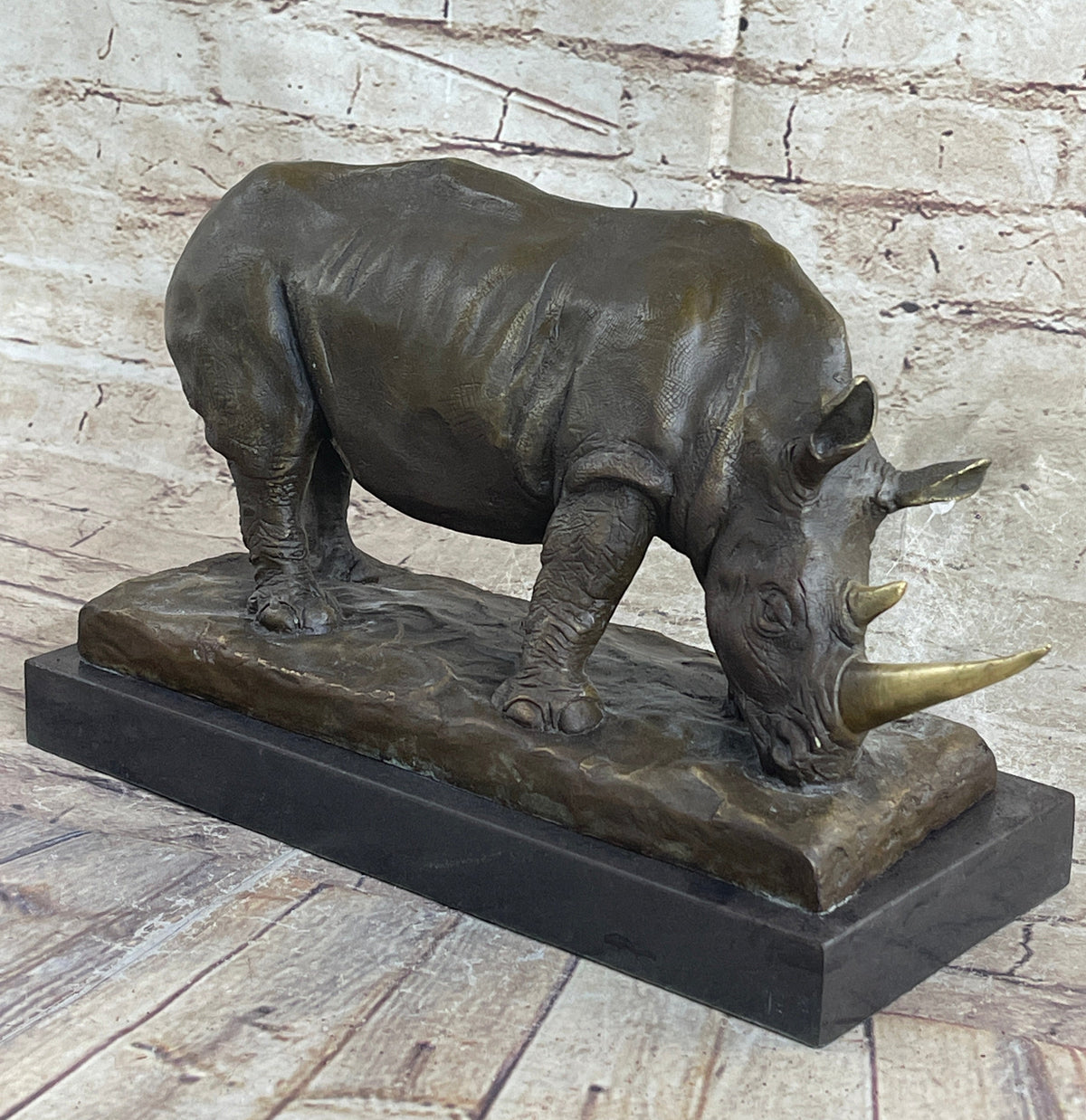 Bronze Metal Rhinoceros Rhino Statue Sculpture Figure Marble Base Barye Art 9" x 14"