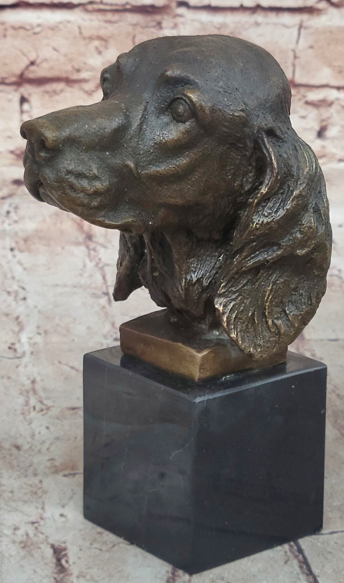 Bronze Sculpture Bust Cocker Spaniel Dog Pet Animal Marble Base Figure Figurine