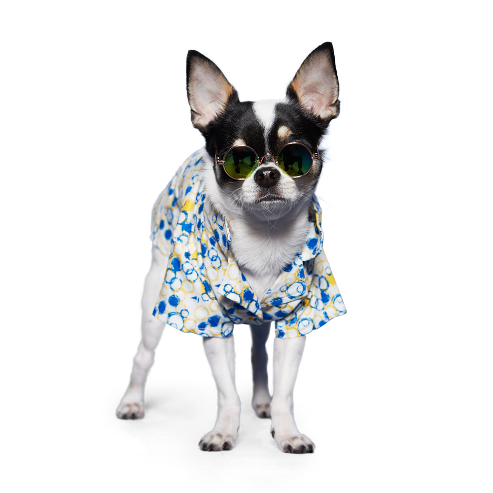 Experience the charm of our blue and yellow bubble dotted collar shirt, adorned with playful dots in a delightful color combination. This shirt features a leash hole for easy outdoor walks, combining hip style and convenience for your furry friend.