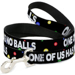 Buckle-Down Dog Leash - ONE OF US HAS NO BALLS/Balls Black/Multi Color/White