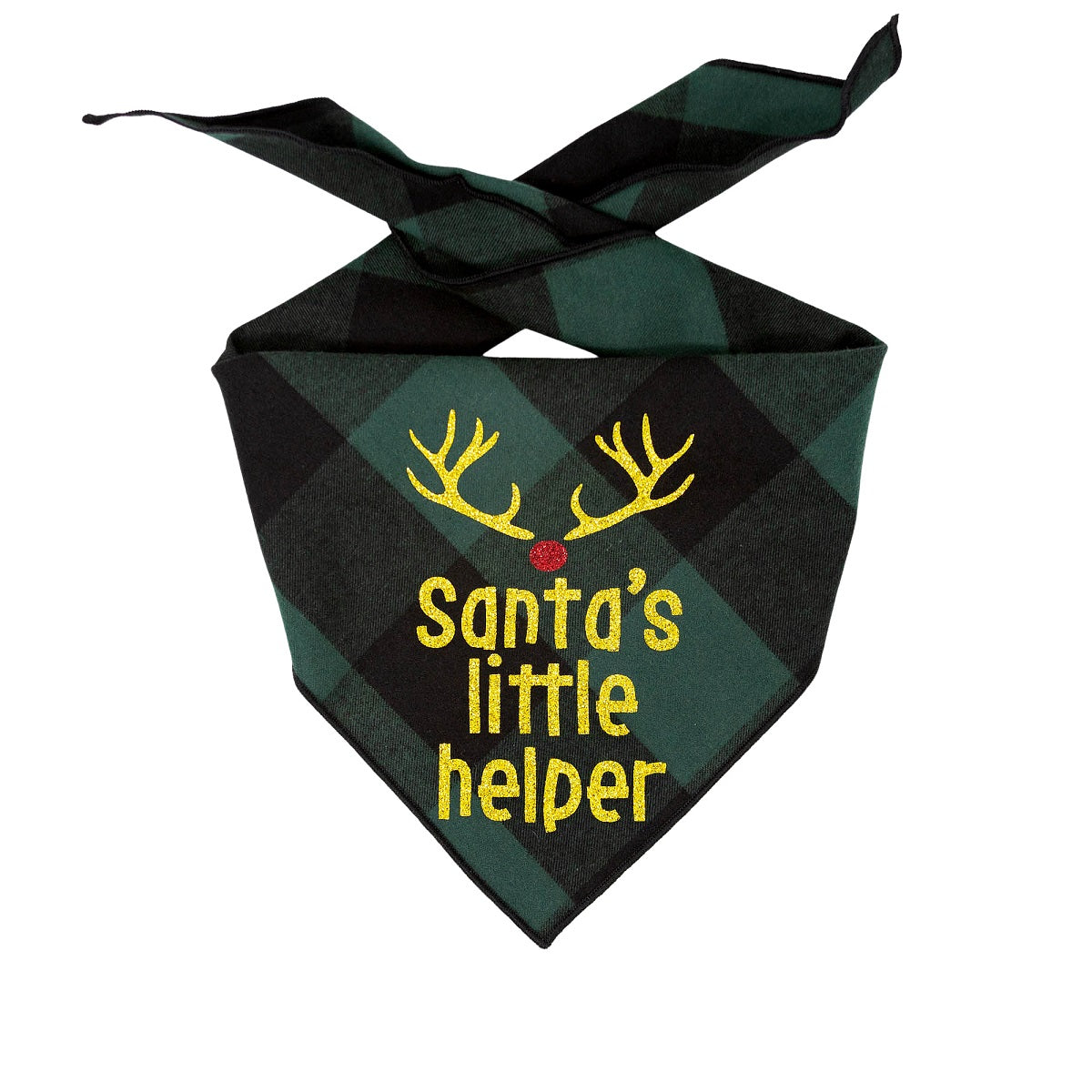 Christmas Bandana - Black & Green Plaid Flannel Dog Bandana - SANTA'S LITTLE HELPER