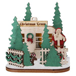 Christmas tree Lot has a small hole on its underside designed to borrow a standard bulb from your Christmas tree to light up the cottage. Upon lighting your cottage, you will immediately discover the first of many secrets, the beautifully crafted scene inside. How are the gingerbread men keeping warm