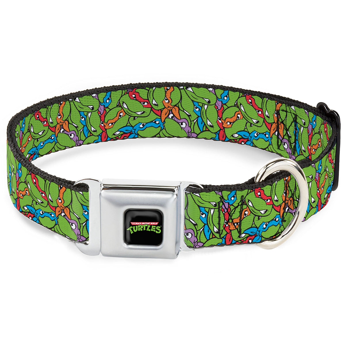 Classic TEENAGE MUTANT NINJA TURTLES Logo Seatbelt Buckle Collar - Teenage Mutant Ninja Turtles Faces Stacked Green/Multi Color