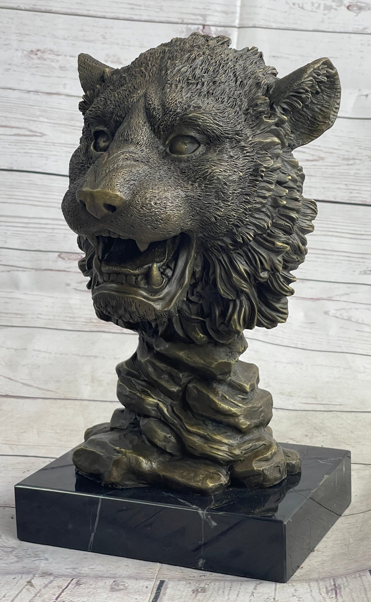 Cougar Lion Big Cat Predator Bust Sculpture Statue Bronze on Marble Base 12" x 7"