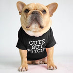 Perfect year-round for an extra thin layer, this fun "Cute but Psycho" Dog T-Shirt fits small and medium breed dogs. Available in 6 colors.