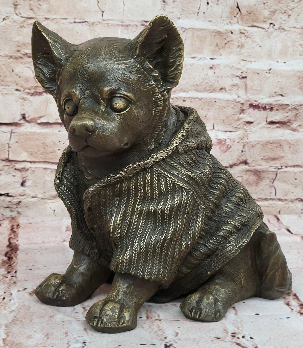 Cute Chihuahua Dog in Hooded Sweater Bronze Sculpture Figurine Statue Hot Cast