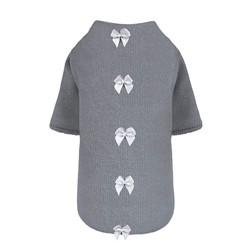 Dainty Bow Dog Sweater Pewter offers tailored for pets. The Dainty Bow Dog Sweater by Hello Doggie features satin bows adorned with a Pearl and made from light soft wool fabric. Our sweater collection is...