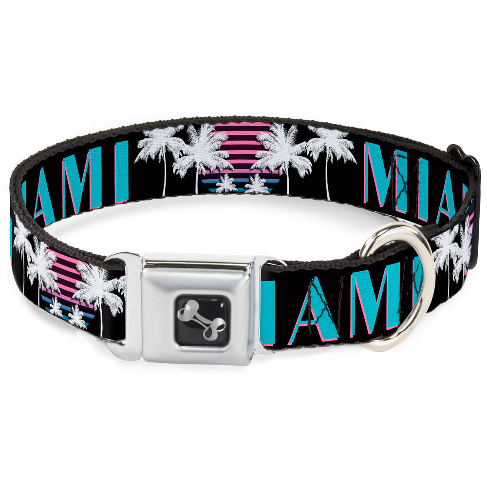 Dog Bone Seatbelt Buckle Collar - MIAMI/Palm Trees Black/White/Pink//Teal
