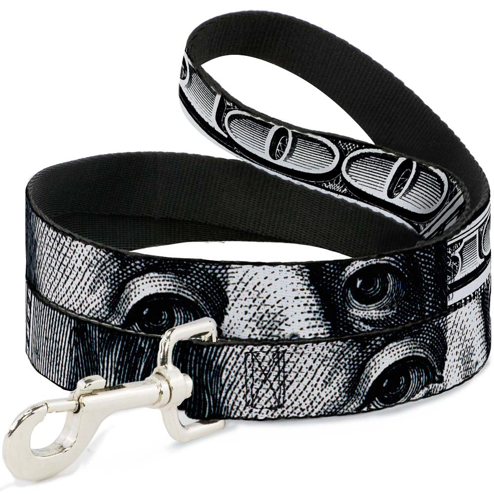 Dog Leash - 100 Dollar Bill CLOSE-UP White/Black