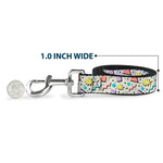 This fashion-forward dog leash is a great way to show off your favorite characters or brands. The durable components and beautiful printing ensure that the colors will continue to pop for years to come! It is made of high-density polyester and steel hardware. The leash is available in 0.5, 1.0 and 1.5 inches wide, and 4 and 6 feet in length. This product is Made in the USA by Buckle-Down Inc. and officially licensed by Buckle-Down.