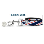 Dog Leash - Americana Diagonal Stars & Stripes White/Red/Blue