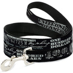 Dog Leash - Americana One Hundred Dollar Bill Elements Black/Gray