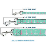 Dog Leash - Anchor2 CLOSE-UP Green/Pink/White