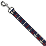 Dog Leash - Anchor3 CLOSE-UP Navy/Red/Cream