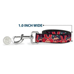 This fashion-forward dog leash is a great way to show off your favorite characters or brands. The durable components and beautiful printing ensure that the colors will continue to pop for years to come! It is made of high-density polyester and steel hardware. The leash is available in 0.5, 1.0 and 1.5 inches wide, and 4 and 6 feet in length. This product is Made in the USA by Buckle-Down Inc. and officially licensed by Buckle-Down.