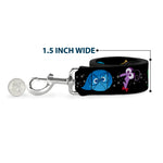 This fashion-forward dog leash is a great way to show off your favorite characters or brands. The durable components and beautiful printing ensure that the colors will continue to pop for years to come! It is made of high-density polyester and steel hardware. The leash is available in 0.5, 1.0 and 1.5 inches wide, and 4 and 6 feet in length. This product is Made in the USA by Buckle-Down Inc. and officially licensed by Disney.