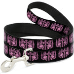 Dog Leash - BD Skulls w/Wings Black/Pink
