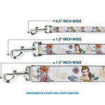 Dog Leash - Beauty and the Beast Belle Castle Pose with Script and Flowers White/Yellows
