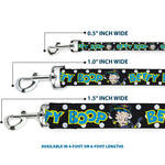 Dog Leash - BETTY BOOP Biker Betty Winking and Text Polka Dot Black/White/Yellow/Blue