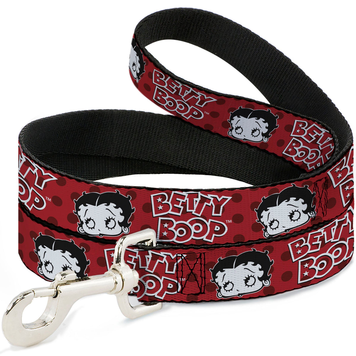 Dog Leash - BETTY BOOP Face and Text Polka Dot Reds/Black/White