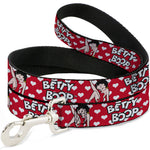 Dog Leash - BETTY BOOP Seated Leg Kick Pose and Text Hearts Red/White/Black