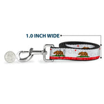 Dog Leash - CALIFORNIA Bear/Star/Crackle Stripe White/Gray/Red