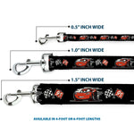 Dog Leash - Cars 3 Lightning McQueen Caricature/Race Flags Black/White/Red