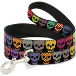 Dog Leash - Checker & Stripe Skulls Black/Multi Neon