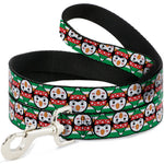 Dog Leash - Christmas Penguin Flip/Stripe Green/White/Orange/Black