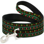 Dog Leash - Christmas Sweater Stitch Green White Gold Red