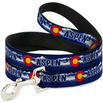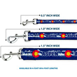 Dog Leash - Colorado ASPEN Flag/Snowy Mountains Weathered2 Blue/White/Red/Yellows