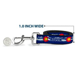 This fashion-forward dog leash is a great way to show off your favorite characters or brands. The durable components and beautiful printing ensure that the colors will continue to pop for years to come! It is made of high-density polyester and steel hardware. The leash is available in 0.5, 1.0 and 1.5 inches wide, and 4 and 6 feet in length. This product is Made in the USA by Buckle-Down Inc. and officially licensed by Buckle-Down.