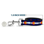 This fashion-forward dog leash is a great way to show off your favorite characters or brands. The durable components and beautiful printing ensure that the colors will continue to pop for years to come! It is made of high-density polyester and steel hardware. The leash is available in 0.5, 1.0 and 1.5 inches wide, and 4 and 6 feet in length. This product is Made in the USA by Buckle-Down Inc. and officially licensed by Buckle-Down.